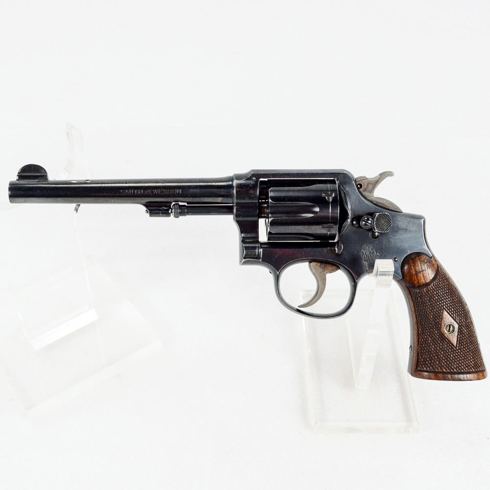 Smith & Wesson Model M&P 1905 4th model cal.38spl, 6" barrel, 5-screw, Correct numbered checkered grips, excellent bore. Case colored hammer and trigger. Nice gun - C&R Eligible S/N:419222