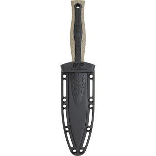 Smith & Wesson M& P Full Tang Fixed Blade Boot Knife, Black 8Cr13MoV High Carbon Stainless Steel Dual Edged Spear Point Blade with Blood Groove, Black Grooved Rubberized Handle with Guard, Brown Rubber Insert, Lanyard Hole and Premium Black Thermoplastic Belt/Boot Sheath
