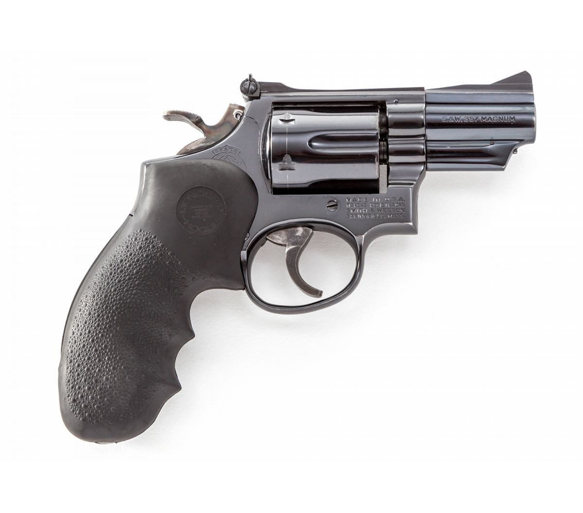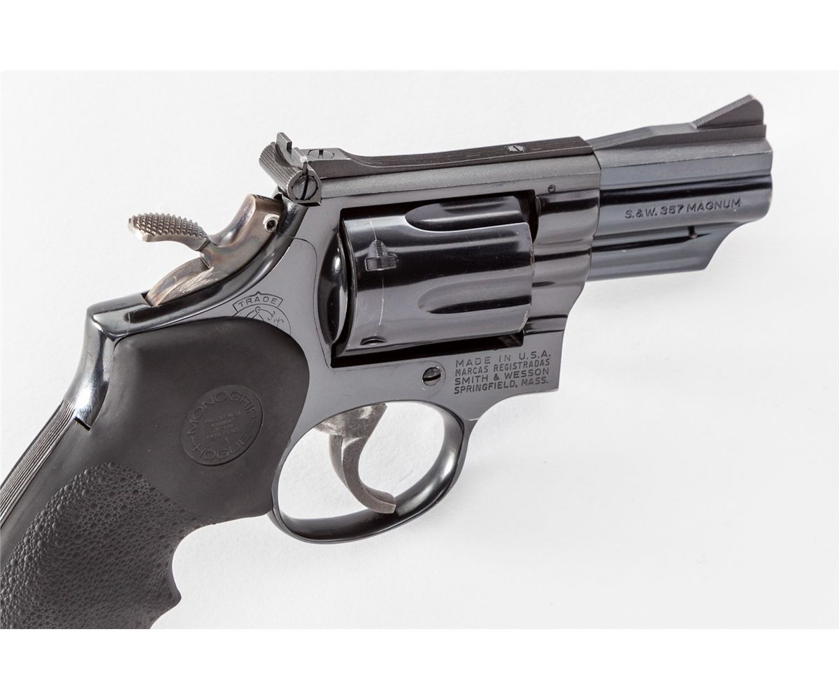Smith & Wesson Model 19-3 Double Action Revolver, #6K51594, .357 mag. cal., 2-1/2'' pre-1981 pinned barrel, blue finish, Hogue monogrip. Condition is excellent showing light index marks to cylinder and minor handling marks. Est.: $450-$600. (Modern)
