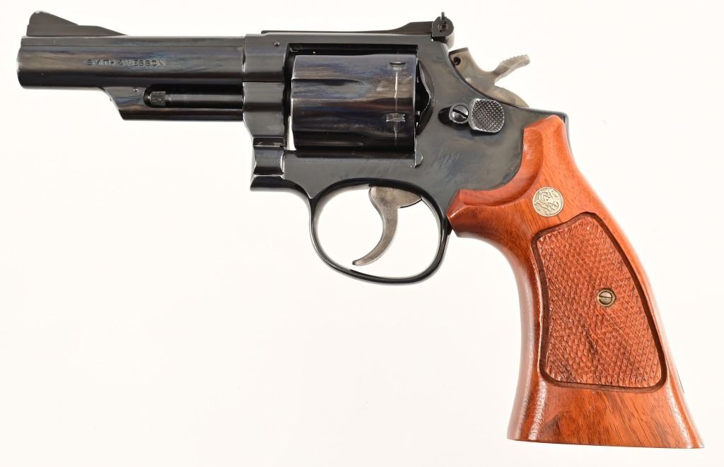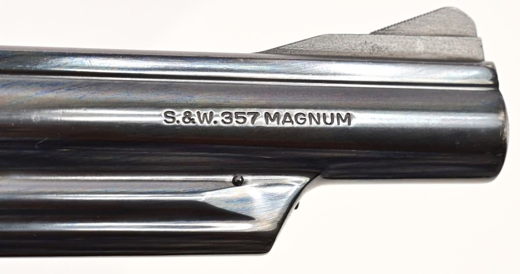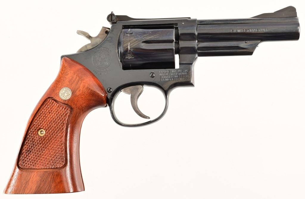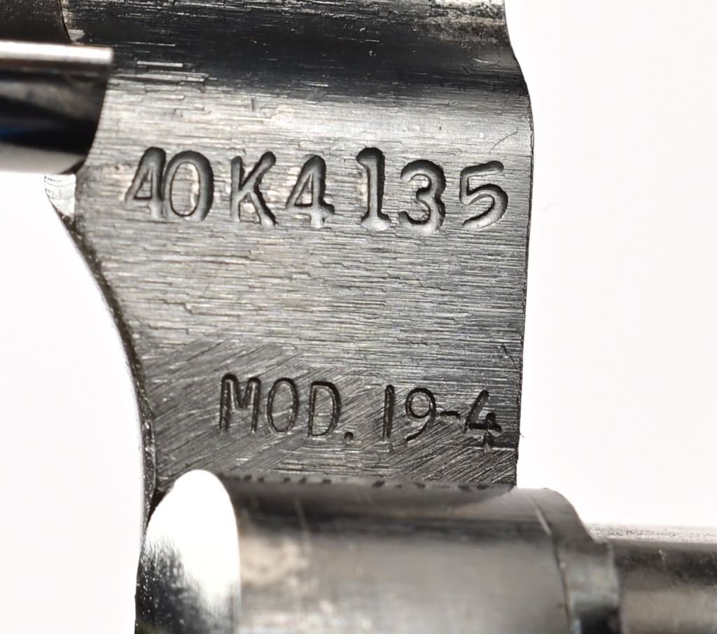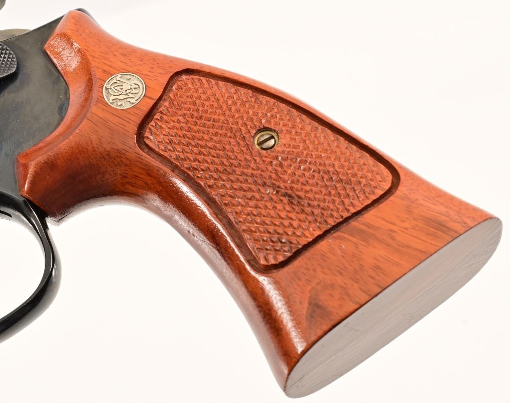 4" barrel, blued finish, checkered Goncalo Alves (Tigerwood) grips. Standard hammer and trigger. S/N 40K4135