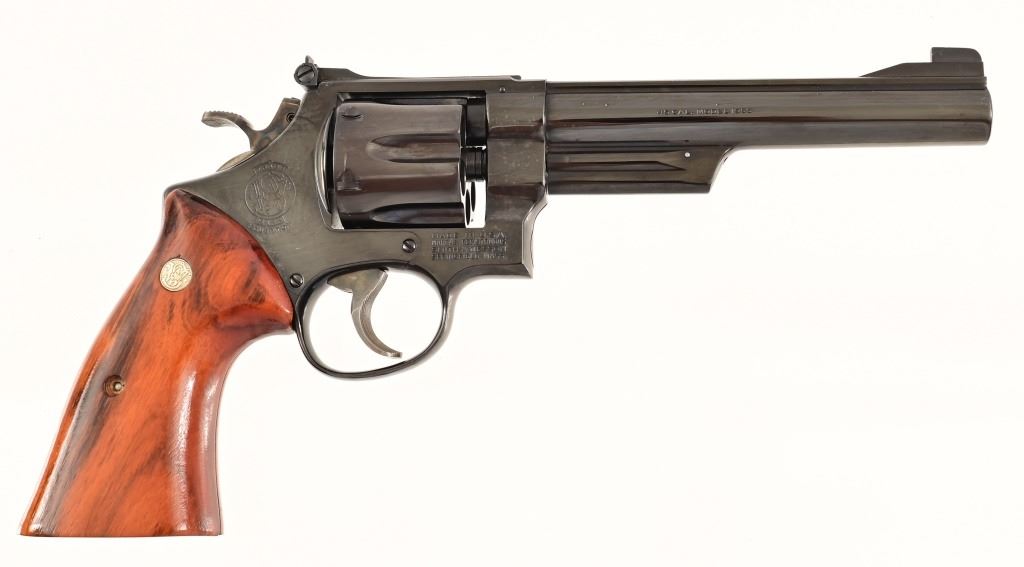 6.5" barrel, blue finish, checkered walnut grips. Sn N378902, manufactured 1975-1976. Grips marked 1982. Possibly unfired after factory, no wear. Target sights, trigger, & hammer.