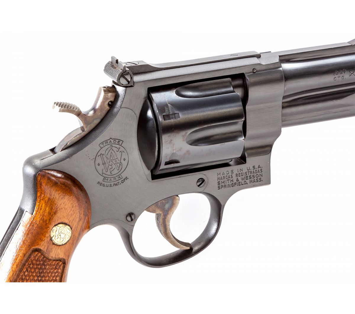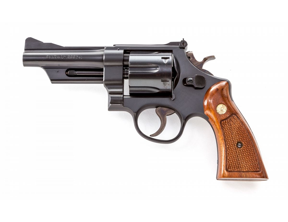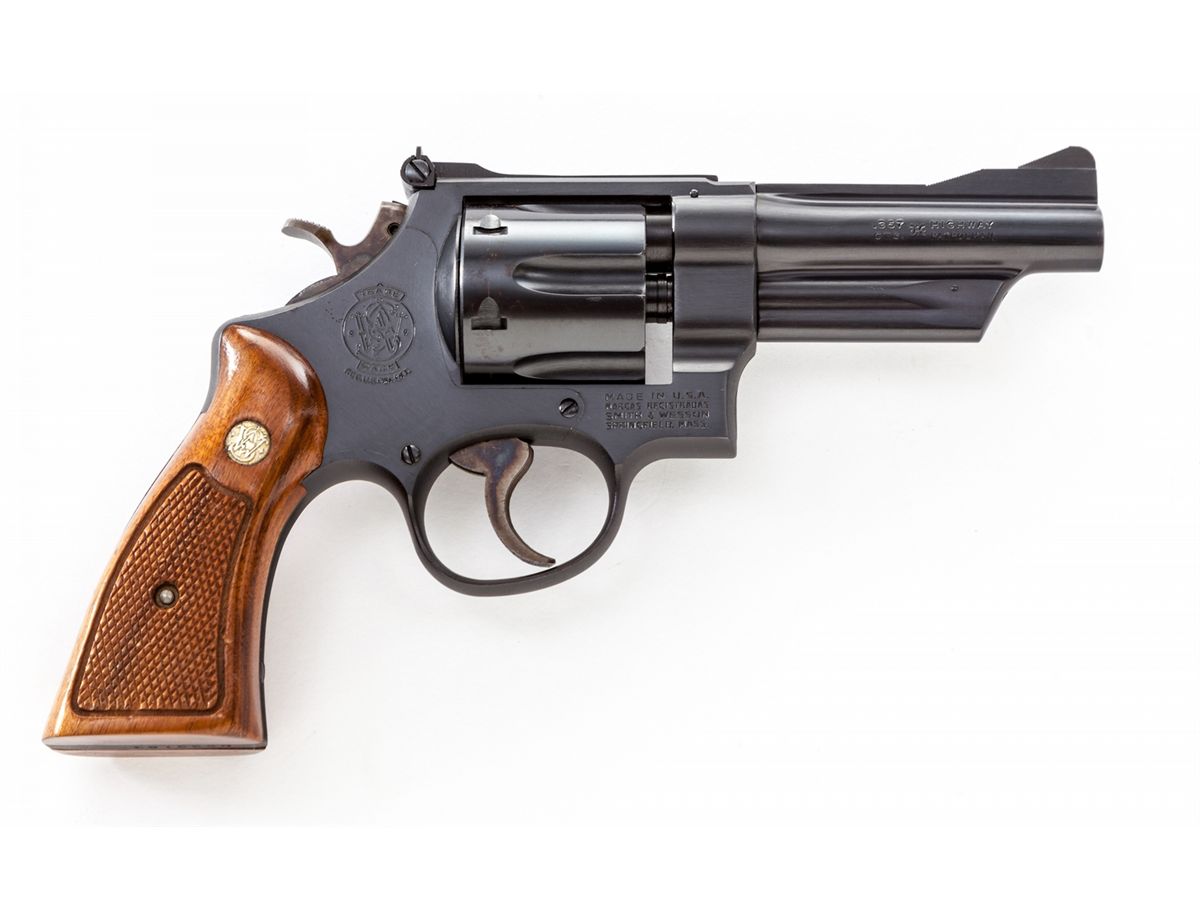 Smith & Wesson Model 28-2 Highway Patrolman Double Action Revolver, #N533163, .357 mag. cal., 4'' barrel, factory matte blue finish, factory checkered walnut grips with S&W medallions. Standard ramp front and clip adjustable rear sights. Condition is excellent with very minor discoloration to small portion of cylinder that may clean. This pre-1981 revolver appears unfired. Est.: $750-$1,000. (Modern)