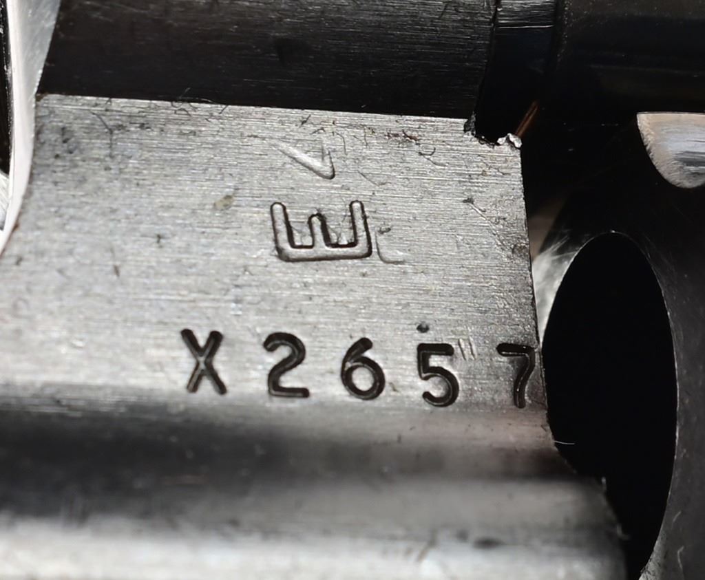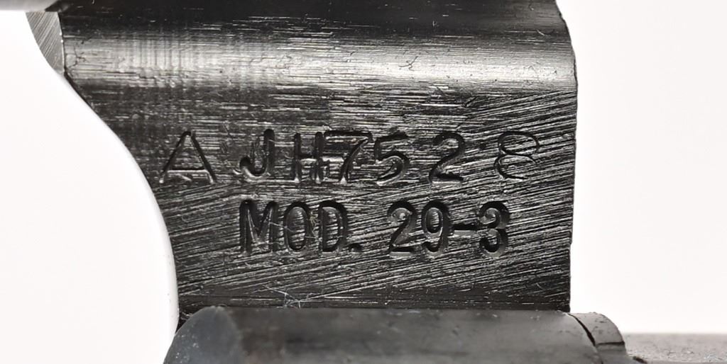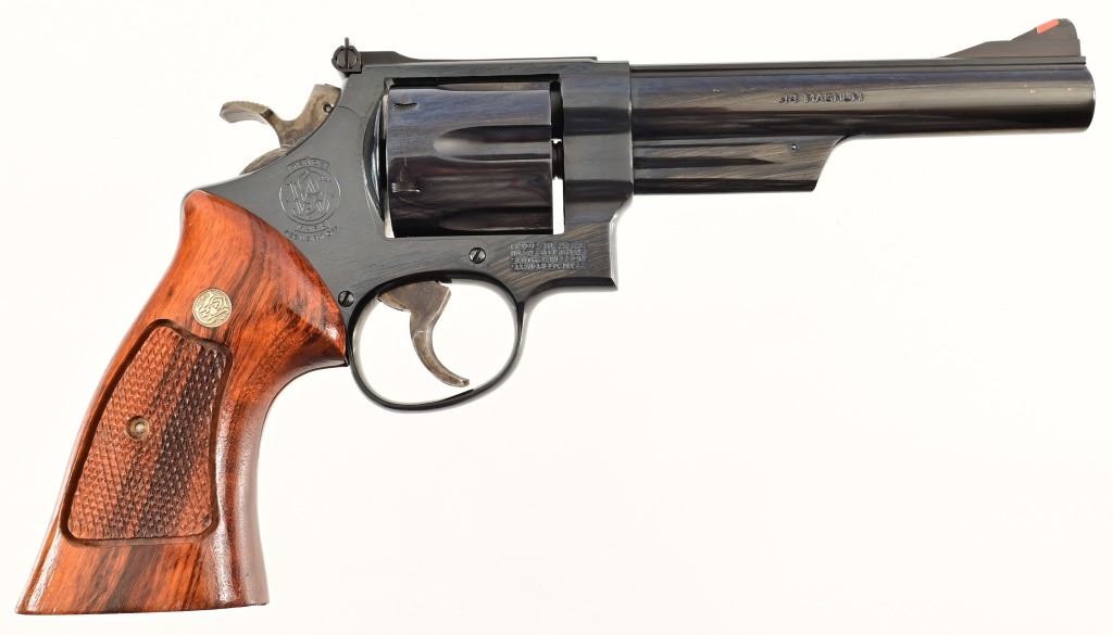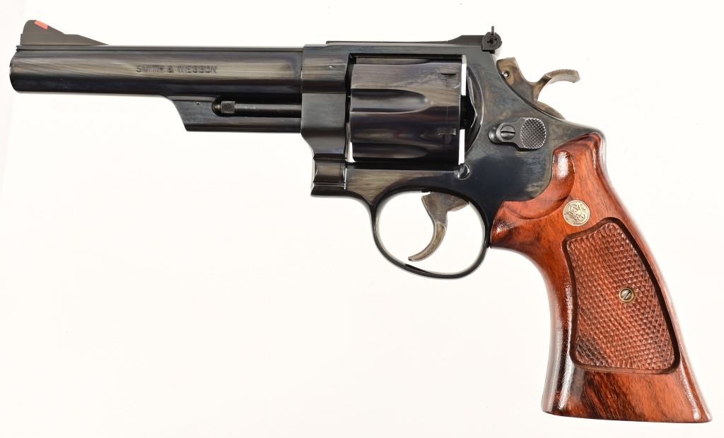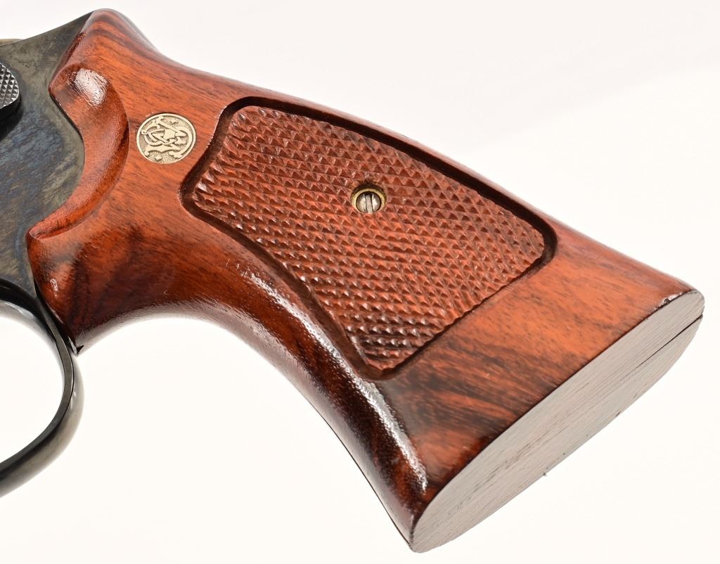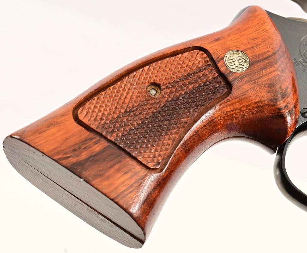 5.75" barrel, blued finish, checkered Goncalo Alves (Tigerwood) grips. Target hammer, trigger, and sights. S/N JH7528