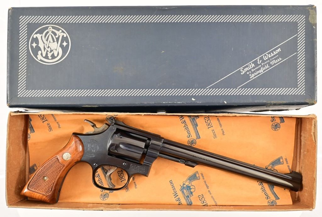 8.375" barrel, 4 screw frame, blue finish. Target hammer, trigger, and sights. Delete diamond grips (1968)Serial 98K2219 (1981) excellent condition with original blue box.