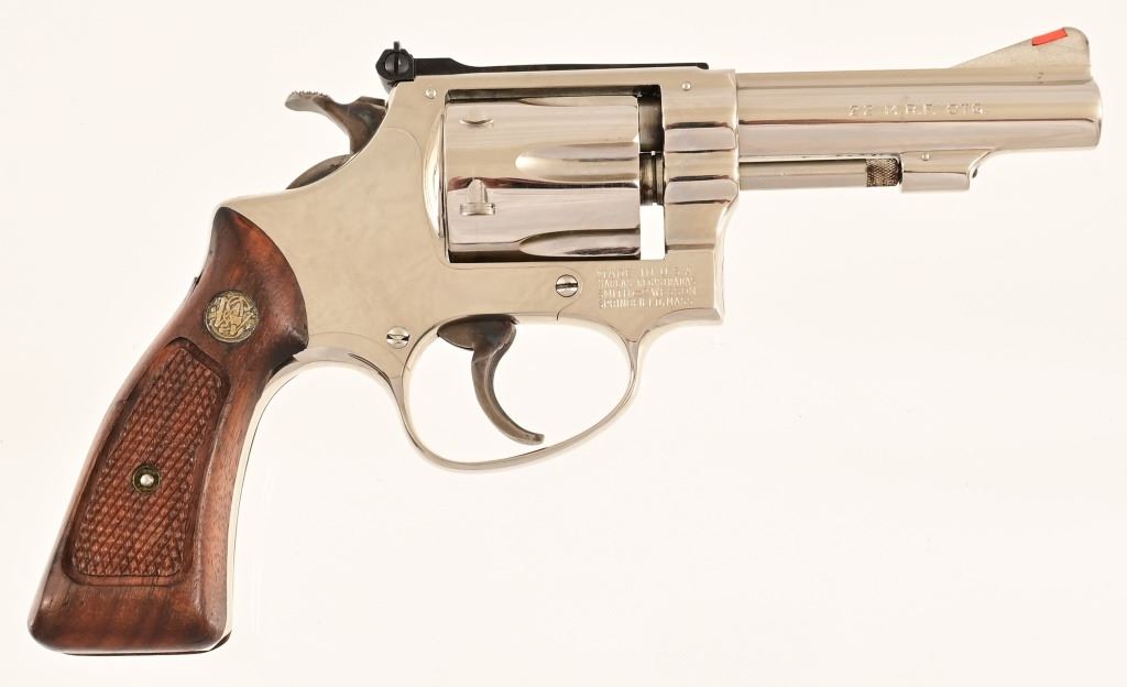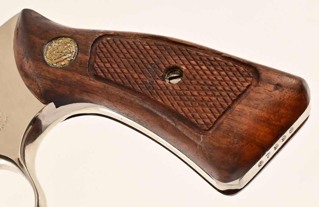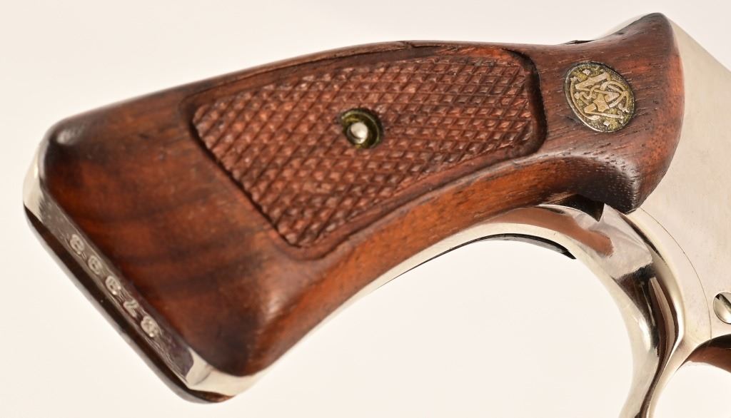 3.5" barrel, 3 screw flat latch model, with rare factory nickel re-finish. Target sights & trigger. SN 87998