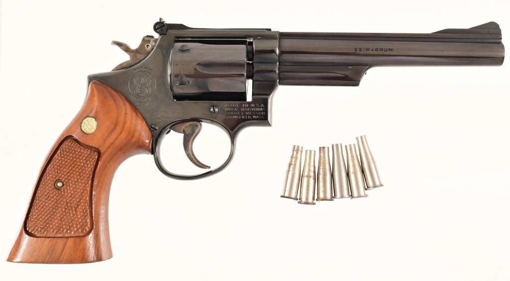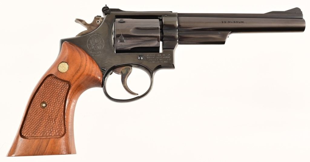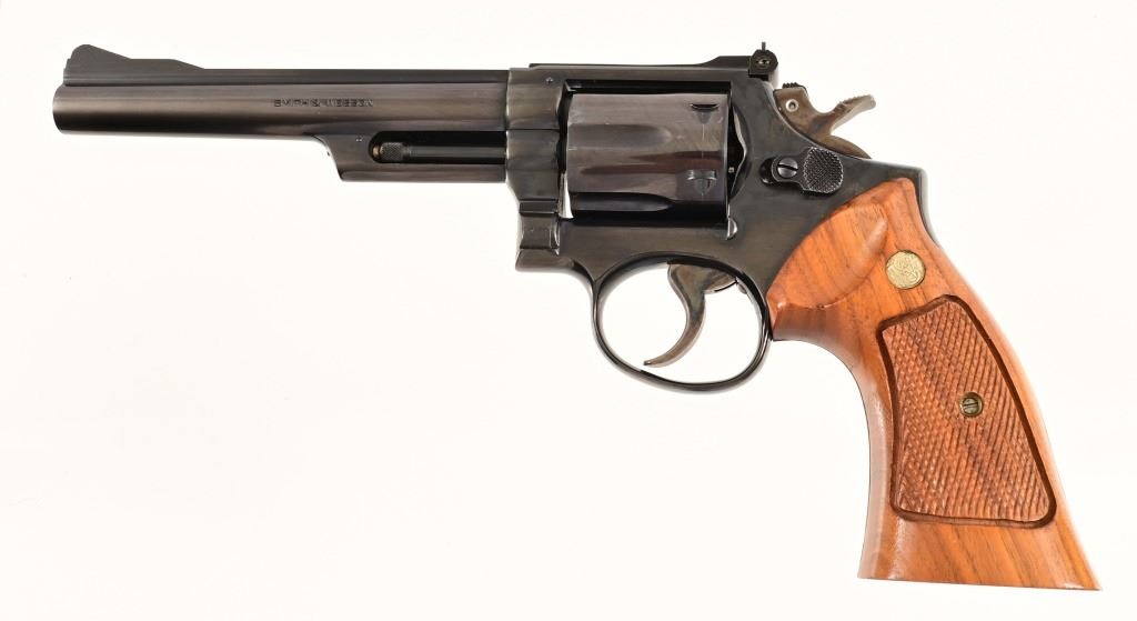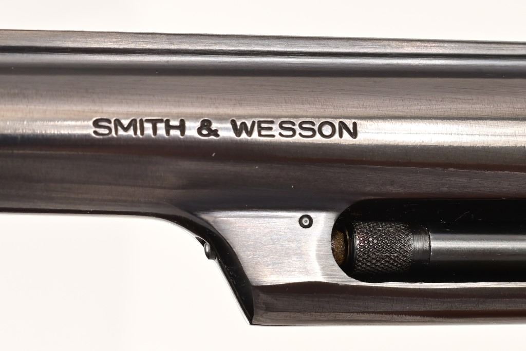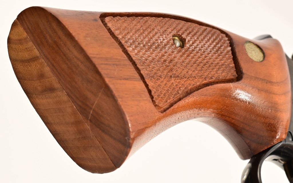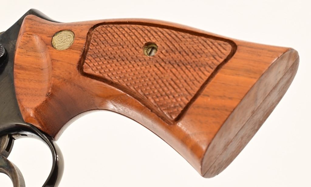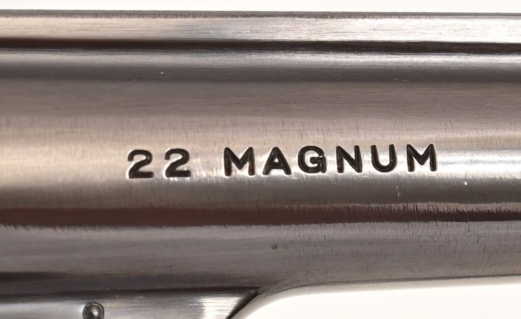 6 7/8" barrel, blue finish, checkered wood grips. With 6 cylinder inserts. Sn 4K49119, manufactured 1973
