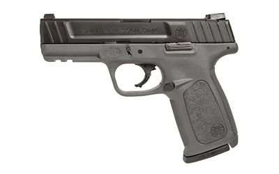 The Smith & Wesson SD40 semi-automatic pistol offers you an exception value at a price which can't be beat. This particular model features a Stainless Steel slide and barrel with a matte black finish. The frame features a textured grip and is made from high quality polymer. The slide is adorned with a set of fixed 3 dot sights, and the frame allows of the mounting of various accessories via the accessory rail. This two tone black slide and grey frame is a nice variation from the standard black. Includes two 14-round magazines.