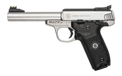 Smith & Wesson, Victory, Semi-Automatic, 22LR, Single Action, 5.5" Barrel, Satin Finish, Stainless Slide/Frame/Barrel, Thumb Safety, Adjustable Fiber Optic Front and Green Fiber Optic Rear Sights, 10 Rounds, 2 Magazines