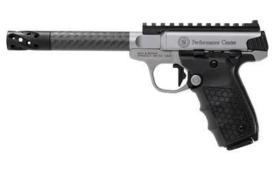 Smith & Wesson, Performance Center Victory Target, Semi-Automatic, 22LR, 6" Target Carbon Fiber Barrel with Muzzle Brake, Stainless Steel, Glass Bead Finish, Optics Ready, Tandemkross "hiveGrips" with Target Thumbrest Grip, 10 Rounds, 2 Magazines, Thumb Safety