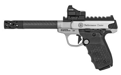 Smith & Wesson, Performance Center Victory Target, Semi-Automatic,22LR, 6" Target Carbon Fiber Barrel with Muzzle Brake, Stainless Steel, Glass Bead Finish, Vortex Viper 6 MOA Red Dot Sight, Tandemkross "hiveGrips" with Target Thumbrest Grip, 10 Rounds, 2 Magazines, Thumb Safety