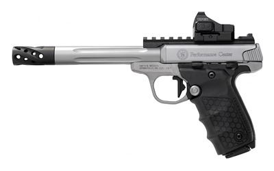 Smith & Wesson, Performance Center Victory Target, Semi-Automatic, 22LR, 6" Target Fluted Barrel with Muzzle Brake, Stainless Steel, Glass Bead Finish, Vortex Viper 6 MOA Red Dot Sight, Tandemkross "hiveGrips" with Target Thumbrest Grip, 10 Rounds, 2 Magazines, Thumb Safety