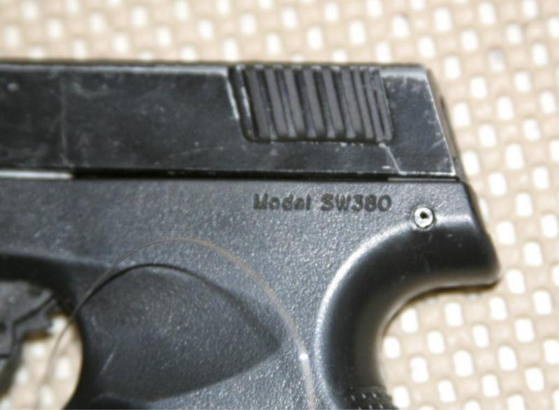 Smith & Wesson model SW380 semi-auto pistol in 380ACP and with 3" barrel. Has some external wear. Action and bore are good. Two mags.