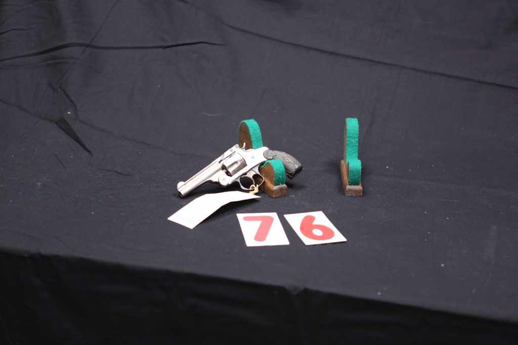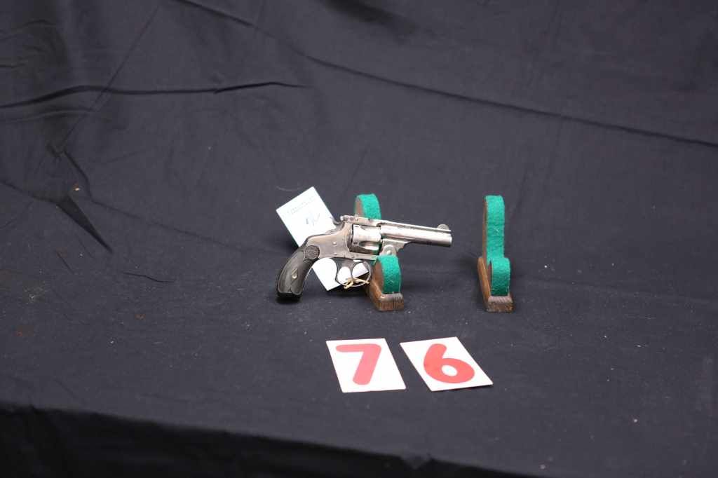 S&W, EARLY MODEL BREAKTOP IN 38 S&W CAL. 50-60% OF ORIGINAL NICKLE REMAINS. HARD RUBBER GRIPS IN VERY NICE CONDITION. (PRE-98)