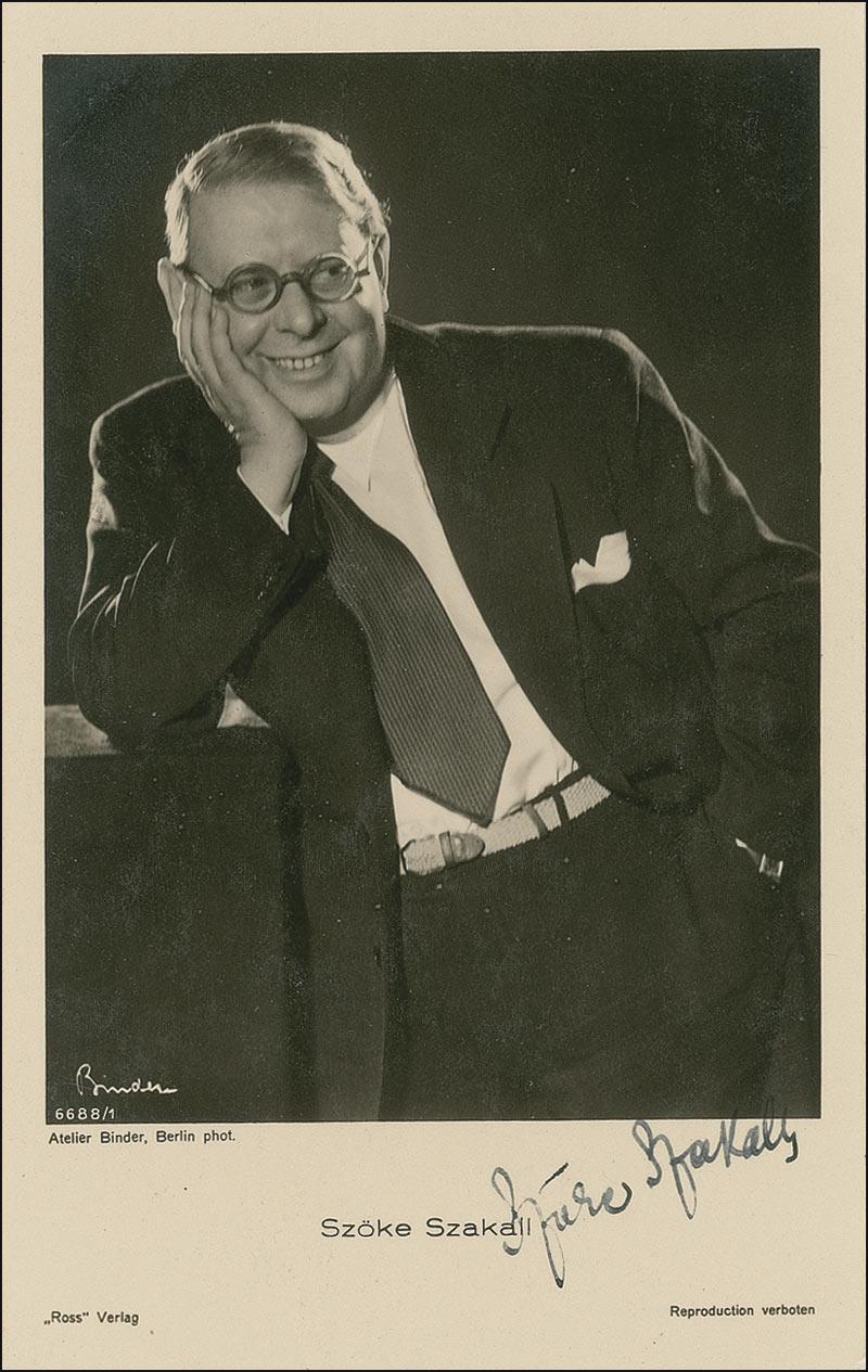 Charming vintage 3.5 x 5.5 German postcard photo, signed in fountain pen, “Szoke Szakall.” In fine condition, with some scattered light silvering to edges.
