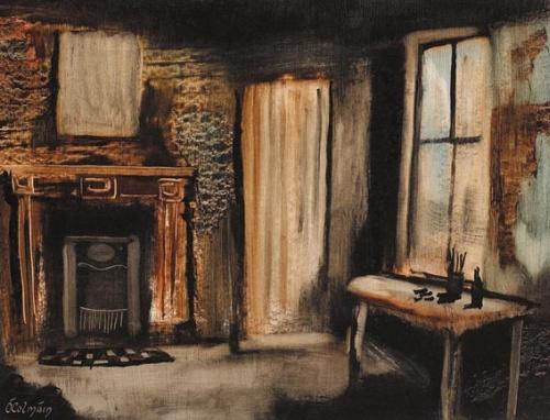 STUDIO INTERIOR signed lower left; typed exhibition label on reverse oil on board <BR>41 by 51cm., 16 by 20in. Exhibited: 'Séamus Ó Colmáin', Ritchie Hendriks Gallery, Dublin, December 1966, catalogue no. 10 (47gns)