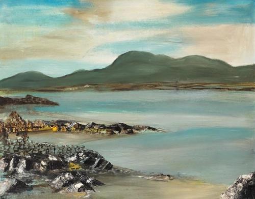 LEENANE, COUNTY GALWAY signed lower left oil on board <BR>61 by 76cm., 24 by 30in. Painted circa 1979 during a stay in the Connemara Gaeltacht.