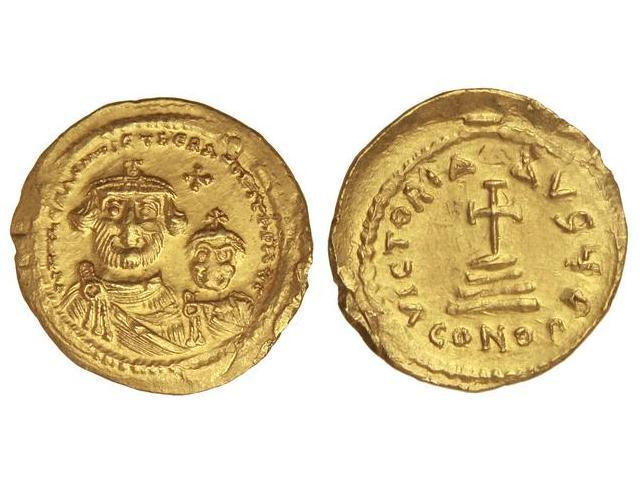 Sólido. (610-641). HERACLIO (610-641). CONSTANTINOPLA. Anv.: dd. NN. h¶RACL¶S ¶T h¶RA. CONST. P. P. AVG. Busto de frente de Heraclio y Heraclio Constantino. Rev.: VICTORIA AVG¶(¶). Cruz sobre tres escalones. En exergo: CONOB. 4