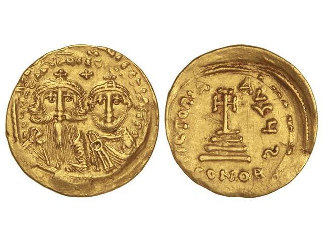 Sólido. CONSTANTE II (641-668 d.C.). CONSTANTINOPLA. Anv.: Bustos de frente de Constante y Constantino IV. Rev.: Victoria AV¶Z CONOB. Cruz sobre tres escalones. 4,40 grs. AU. (Leyenda ilegible en anverso). Se-959 var. MBC.</