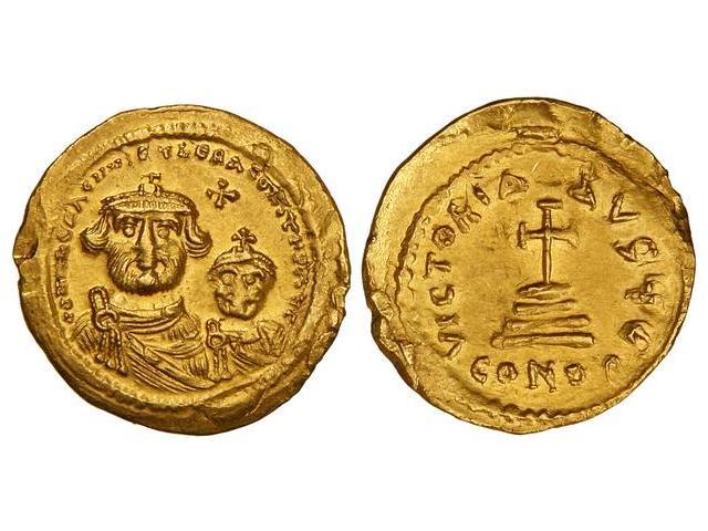 Sólido. HERACLIO (610-641). CONSTANTINOPLA. Anv.: dd NN. h¶RACLI¶S ¶T h¶RA. CONST. P. P. AVG. Bustos de frente de Heraclio y Heraclio Constantino. Rev.: VICTORIA AVG¶(¶). Cruz sobre tres escalones. En exergo: CONOB. AU. (Limadura en canto). Se-738. EBC/EBC-.