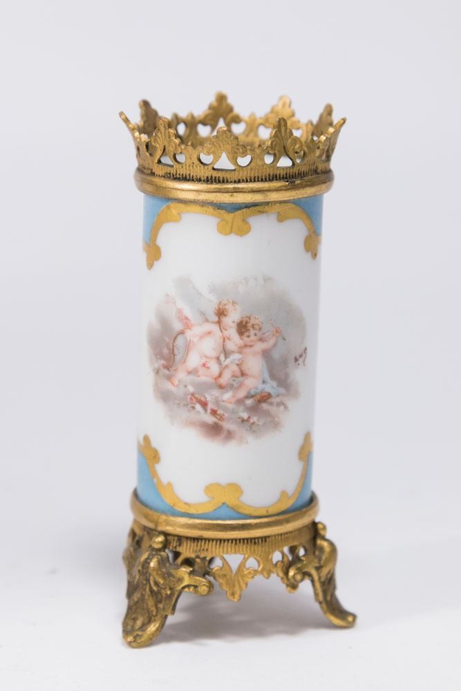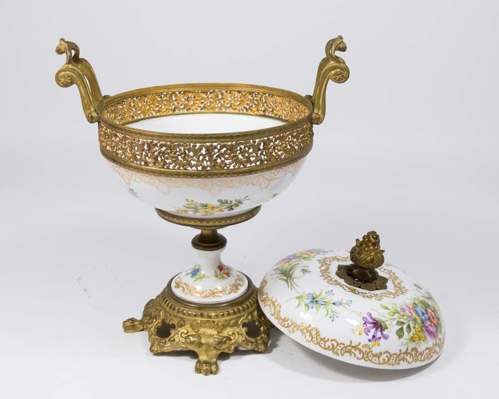 Covered centerpiece, approx. 10 1/2" H. Toothpick holder, approx. 4 1/4" H.
