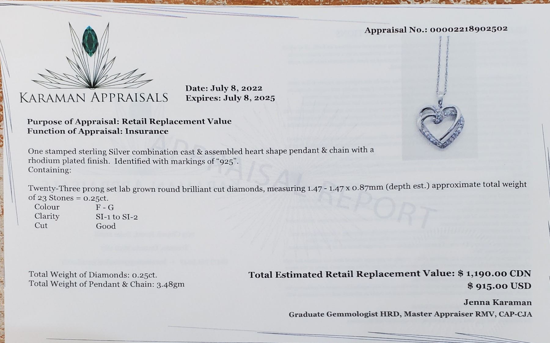 SILVER, 23 LAB GROWN DIAMOND (.25CT, SI1-SI2,F-G) NECKLACE WEIGHT 3.48G, APPRAISED RETAIL $1190 **ALL ITEMS MUST BE REMOVED BY 5PM SATURDAY, JANUARY 21ST 2023. ALL MAGIC SPACE ITEMS MUST BE REMOVED BY WEDNESDAY, JANUARY 18TH AND ARE LOCATED AT 9058-22 AVENUE SW #102. **ALL REMAINING ITEMS WILL BE SUBJECT TO A $6.00 PER DAY STORAGE CHARGE. ANY ITEMS REMAINING AFTER MONDAY, FEBRUARY 6TH, 2023 WILL BE CONSIDERED FORFEITED. NO REFUNDS WILL BE ISSUED FOR FORFEITED ITEMS. TO SCHEDULE A PICK UP APPOINTMENT CLICK HERE