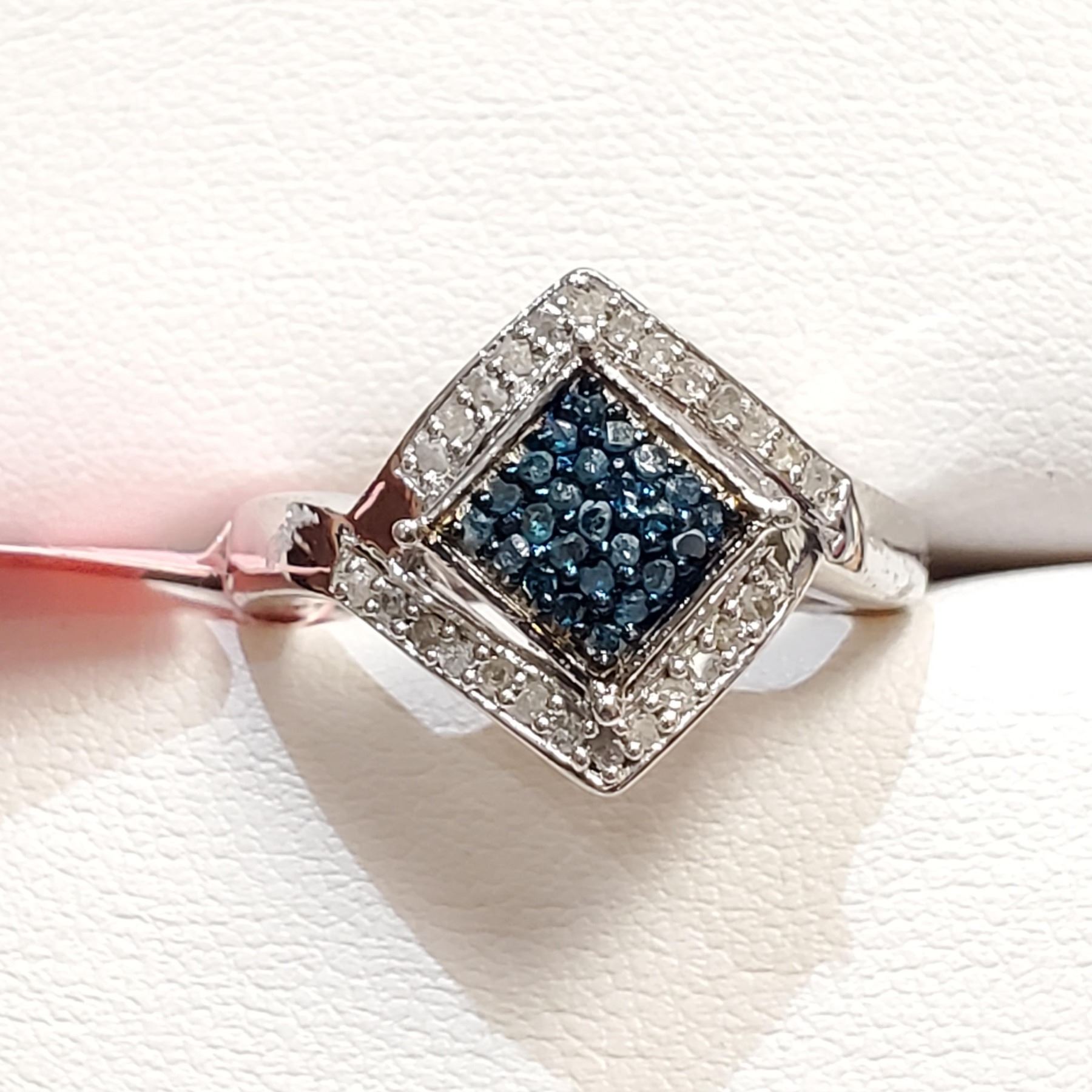 BLUE DIAMONDS(0.25CT) WHITE DIAMONDS(0.26CT) RING SIZE 7 *RING HAS A GLUE RESIDUE COVERING THE BAND FROM AN OLD TAG* DIAMONDS ARE COLOR TREATED, SETTING APPEARS TO BE COLOR TREATED OR DYED IMPROPERLY **ALL ITEMS MUST BE REMOVED BY 5PM SATURDAY, MARCH 4TH 2023. ALL REMAINING ITEMS WILL BE SUBJECT TO A $6.00 PER DAY STORAGE CHARGE. ANY ITEMS REMAINING AFTER MONDAY, MARCH 20TH, 2023 WILL BE CONSIDERED FORFEITED. NO REFUNDS WILL BE ISSUED FOR FORFEITED ITEMS. TO SCHEDULE A PICK UP APPOINTMENT CLICK HERE