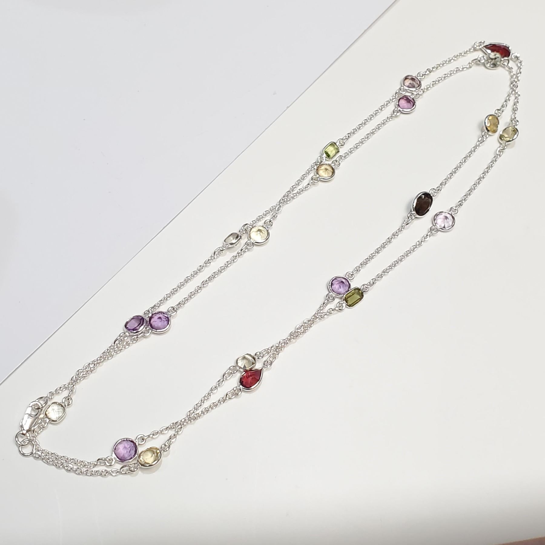 S211-216 SILVER GEMSTONES(20CT) 36" NECKLACE