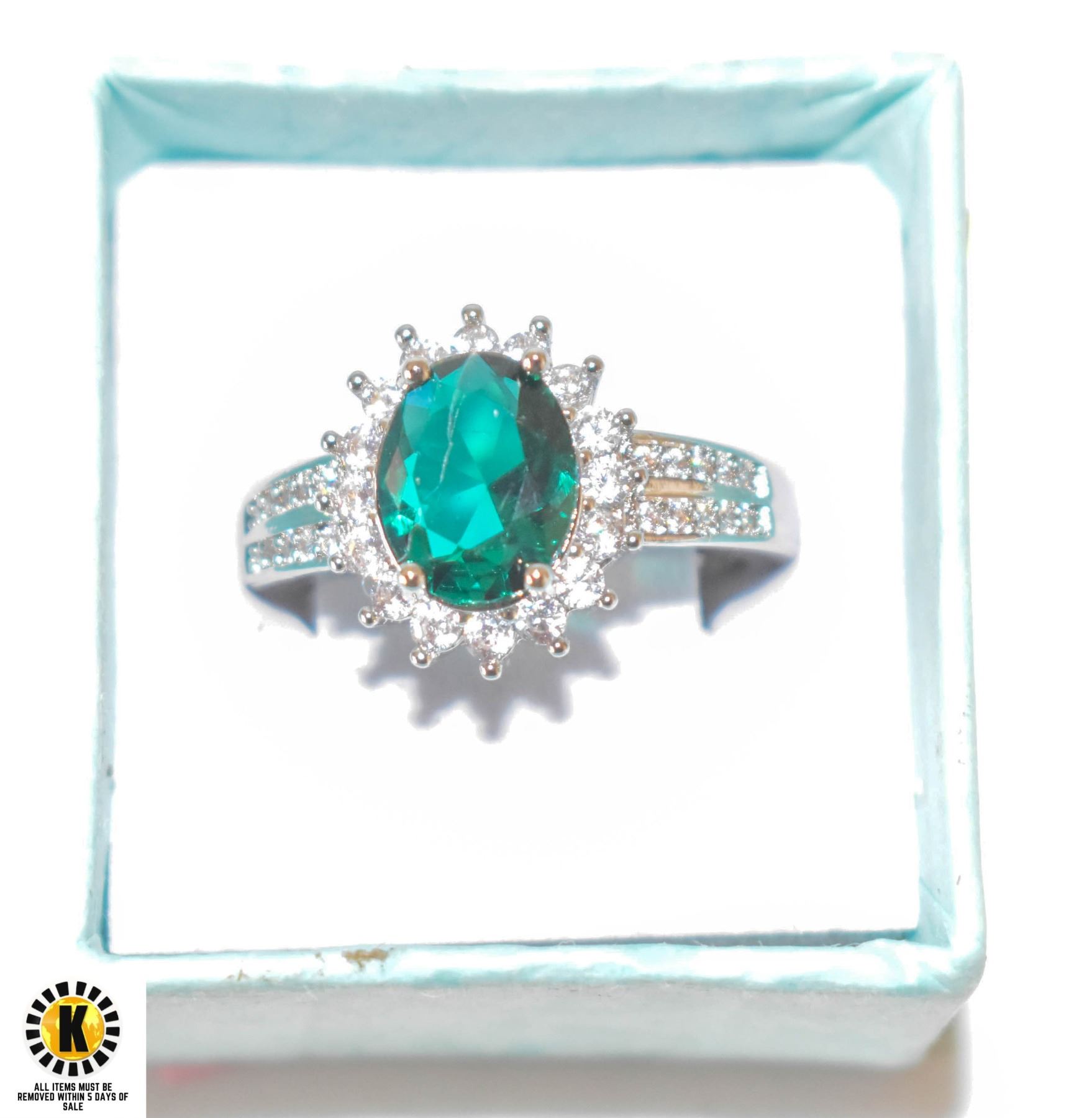S925 EMERALD GEMSTONE RING SIZE 9 NEW