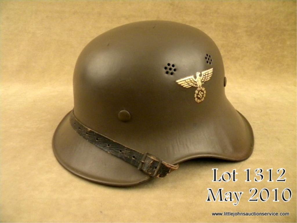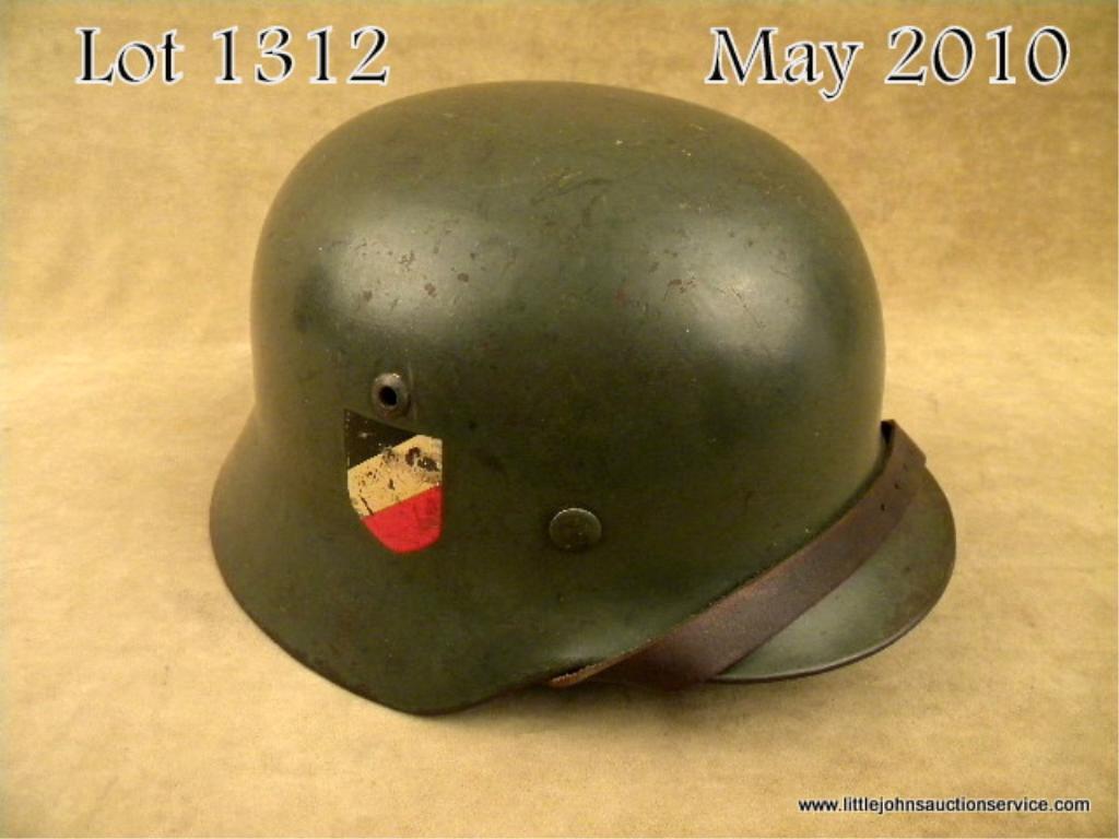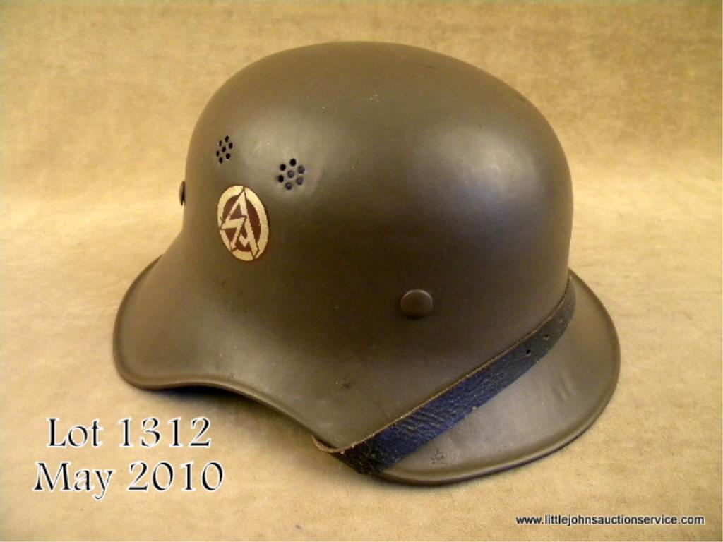 SA gladiator-style helmet in very good condition with original decals, liner, and original chinstrap. A scarce helmet. Est: $600 - $1,200