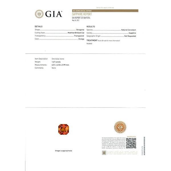 NEW 14K White Gold 2.67 ctw GIA Octagonal Orange Sapphire Diamond Engagement Rin789 - NEW 14K White Gold 2.67 ctw GIA Octagonal Orange Sapphire Diamond Engagement Rin