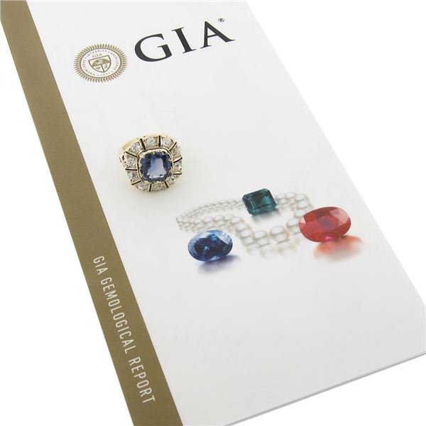 Vintage 14K Gold GIA Ceylon No Heat Cushion Sapphire & Diamond Halo Platter Ring212 - Vintage 14K Gold GIA Ceylon No Heat Cushion Sapphire & Diamond Halo Platter Ring