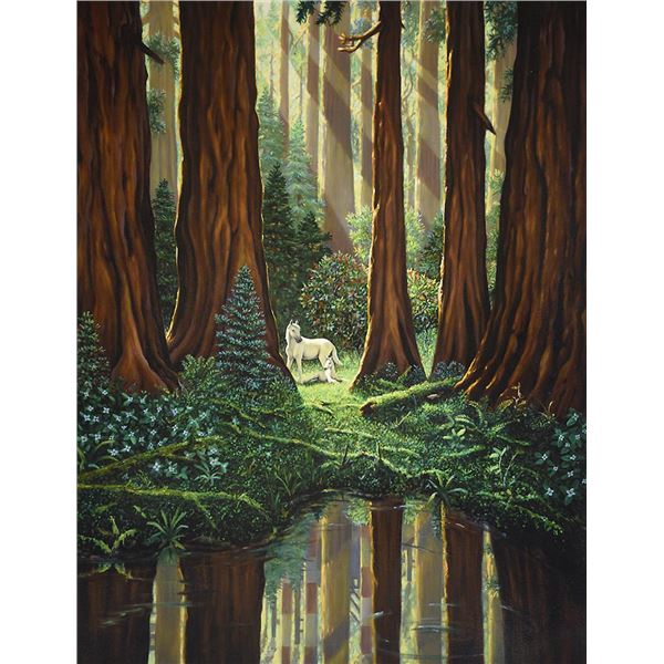 Giclee on canvas, limited edition embellished with glitter by Charles Lynn Bragg. It's a full moon and it's playtime for a dophin family. 24...