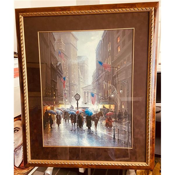 A framed 1994 lithograph by G. Harvey, of "Wall Street" near the turn of the Century. #1055/4250 Framed 39 x 33" With COA.