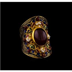 One of a kind high fashion sterling silver Ring weighing 20.2 grams. Containing: Ruby, Multi-color Enamel Inlay. This sterling silver promises a lasti