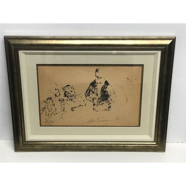 LeRoy Neiman "Cuisine" Original marker sketch on Paper signed by LeRoy Neiman - Circa 1958 - Framed size = 34"x26" - Includes Ce...
