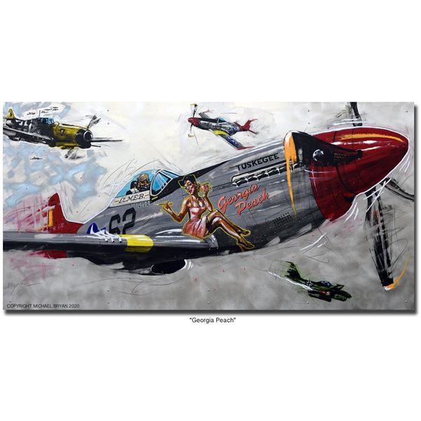 Michael Bryan's WWII fighter plane is adorned with a pin-up girkl commemoratuing the Tuskegee Airmen. This is a 20x40" hand-worked giclee o...