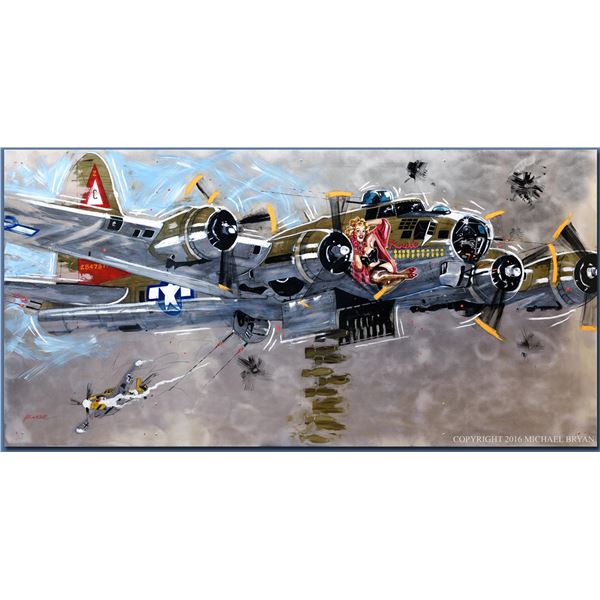 A visit from Rosie is in store for the enemy in this tribute to WWII fighter pilots by Michael Bryan. This is a handworked giclee on canvas 20x40&qu...
