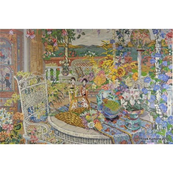 "Glori" is a limited edition lithograph on paper with remarque by Edna Hibel (1917-2014), numbered and hand signed by the artist. Includes...