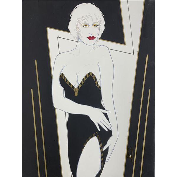 An original acrylic on board, "Pose" by Leal is a striking image of a woman 20x15" on board. Signed by the artist, it has one dog-ear...