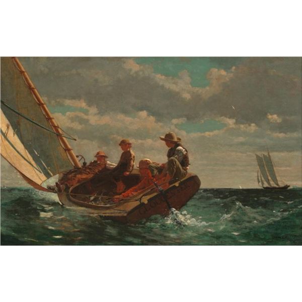 Artist: Winslow Homer - Title: Breezing Up - Medium: Fine Art Giclee on Canvas - Image Size: Approximately 20 inches x 32 inches - Framed: Unframed