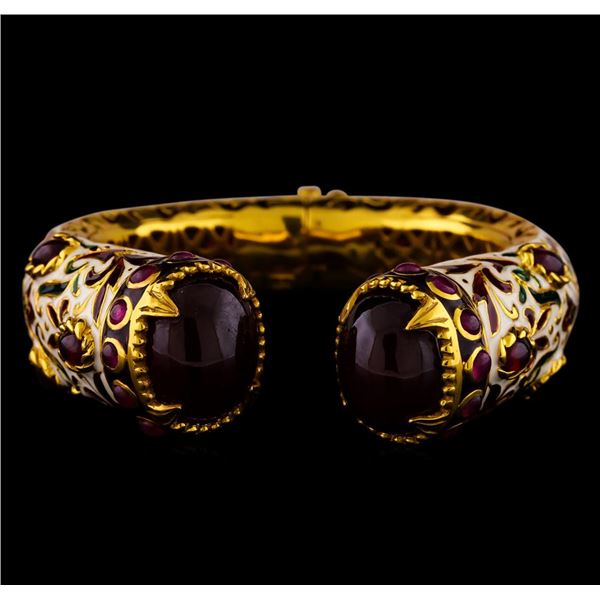 One of a kind high fashion sterling silver Bracelet weighing 105.1 grams. Containing: Ruby, Multi-color Enamel Inlay. This sterling silver promises a