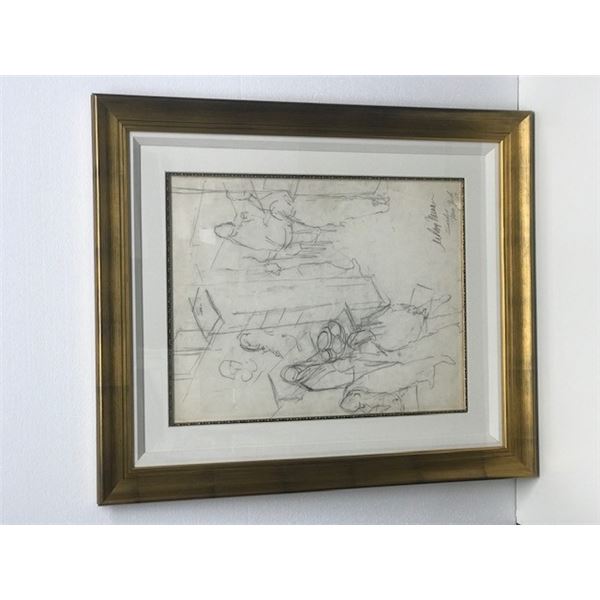 LeRoy Neiman "Sardis New York" - Original pencil sketch on paper signed by LeRoy Neiman - Circa 1959 - Framed size = 33"x38" - I...