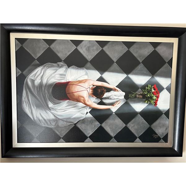 A ballerina takes a moment for her accolades in this 32x48" giclee ion canvas, by DELLORCO, in a magnificent 55.25x39.25" frame.