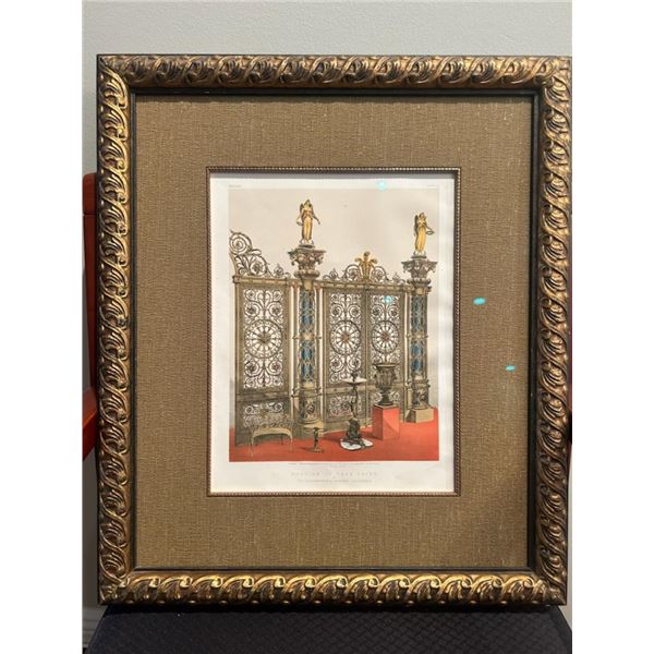 Antigue reproduction of a color etching depicting a portion of the Park Gates by engravers to the Queen 18.5 x 21.75" on paper, silk matted &am...