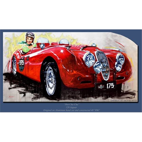 Is it the Jaguar or the gal that's a "Hot Cha Cha " in this Michael Bryan tribute to car & driver . This is a 20x40" handwork...