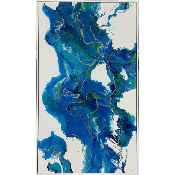Mesmerizing original mixed media with resinon on canvas. Hand signed by artist. This artwork comes beautifully framed and ready to hang Art size 40x68