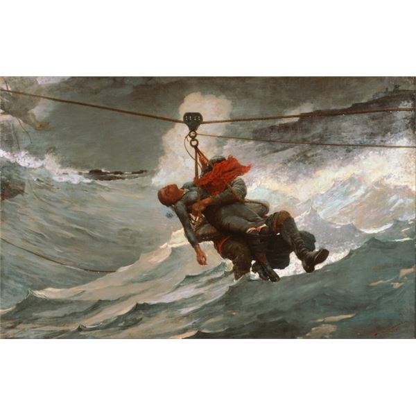 Artist: Winslow Homer - Title: The Life Line - Medium: Fine Art Giclee on Canvas - Image Size: Approximately 12.5 inches x 20 inches - Framed: Unfra