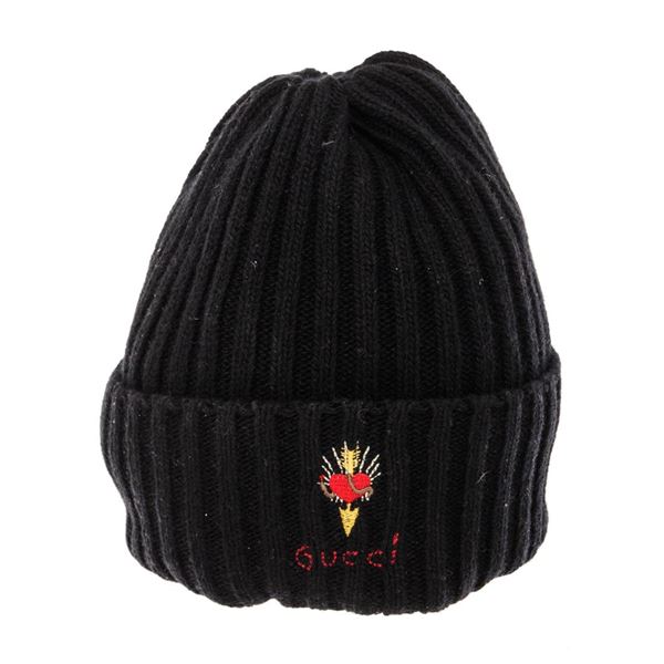 256 - Gucci Black Knit with Pierced Heart BeanieSeized Assets Auctioneers
