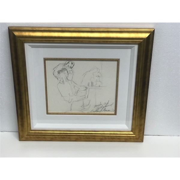 LeRoy Neiman "Make Up Hollywood" Original Graphite sketch on paper signed by LeRoy Neiman - Circa 1959 - Framed size 26" x 24" -...