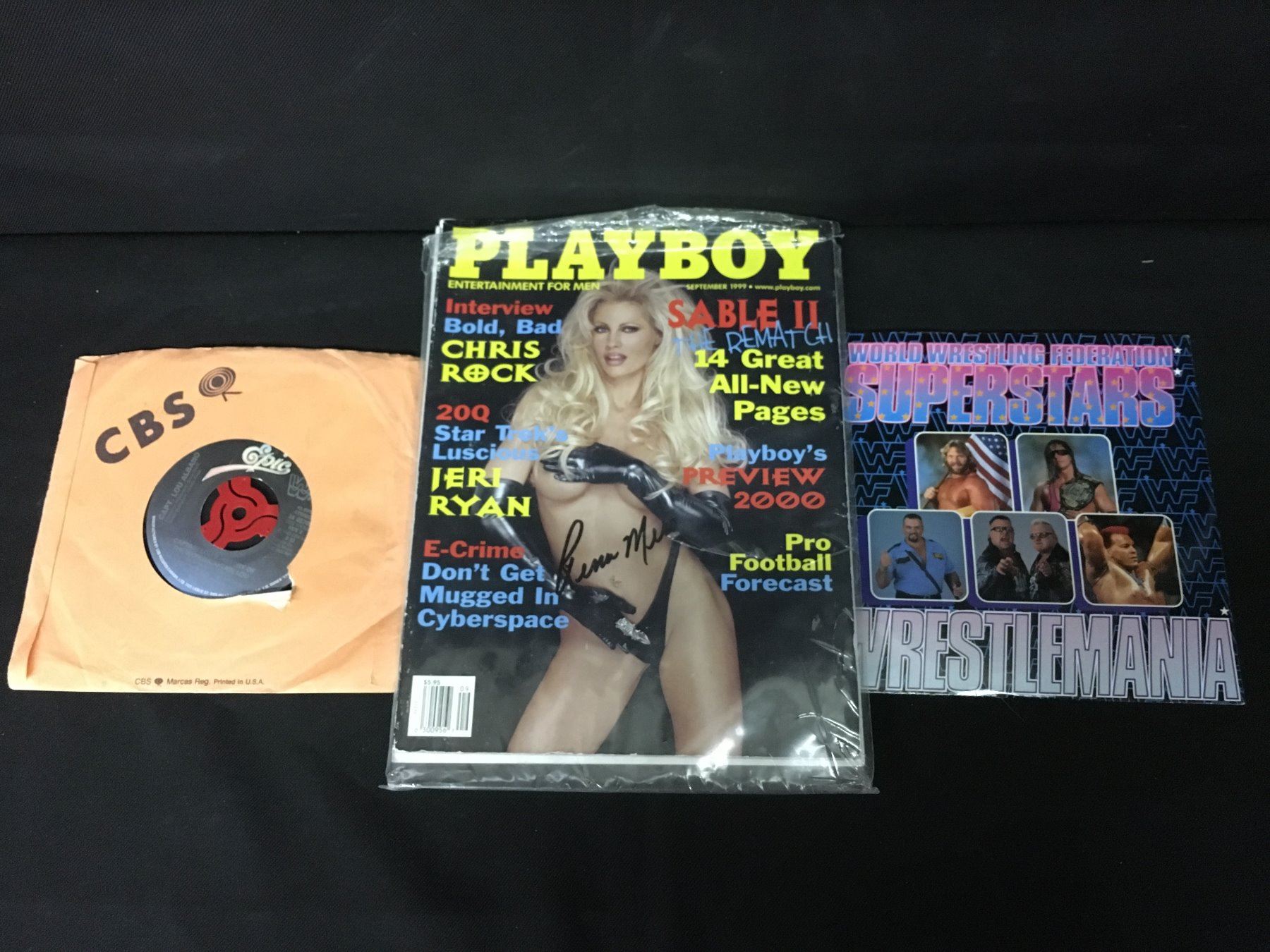 SABLE SIGNED PLAYBOY MAGAZINE & WWF SUPERSTARS VINYL RECORD (7")